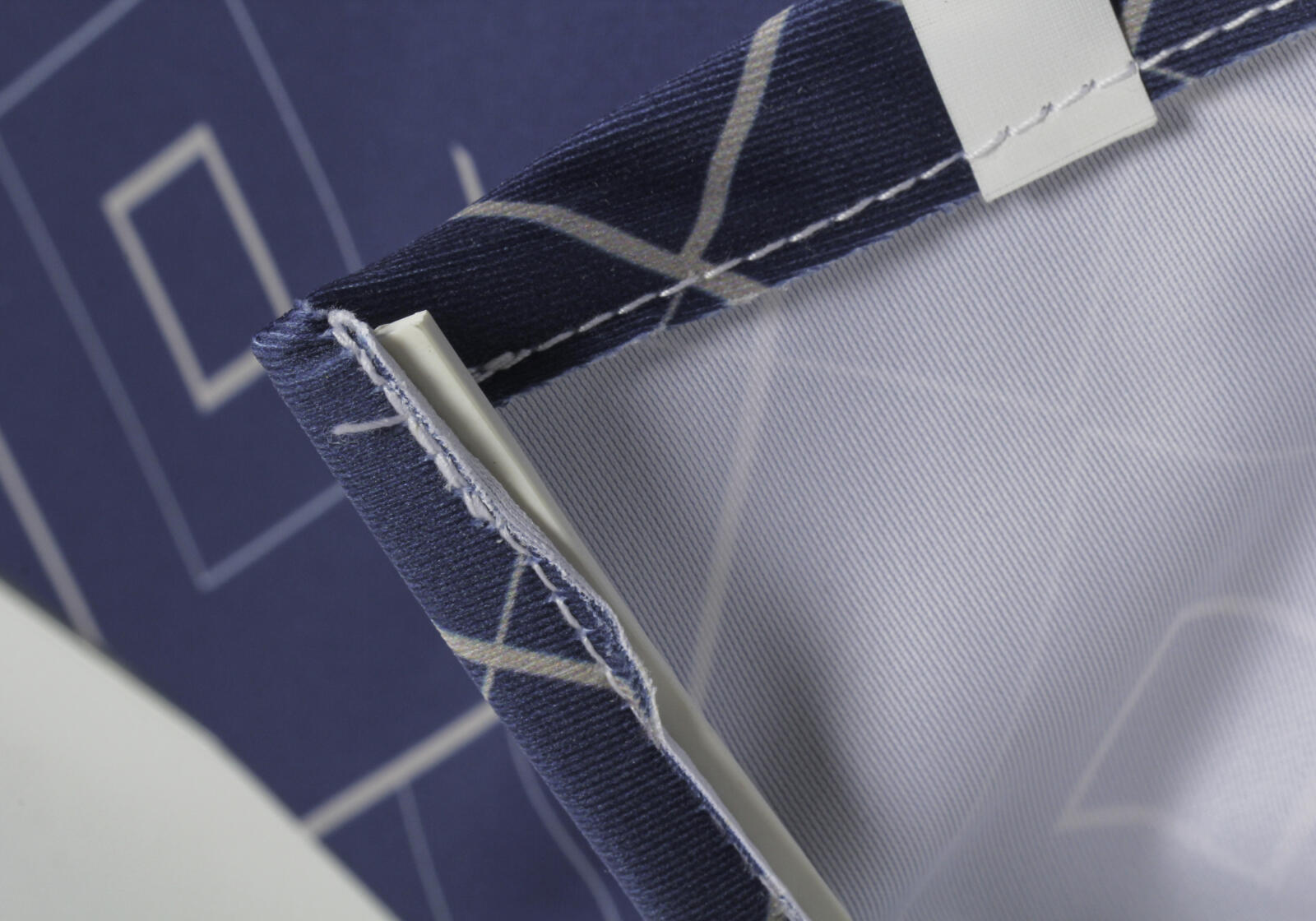 Mostrador de recepción de tela + estructura autoportante con tela tensada